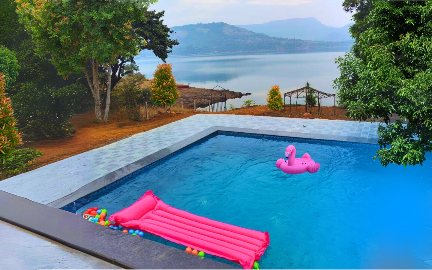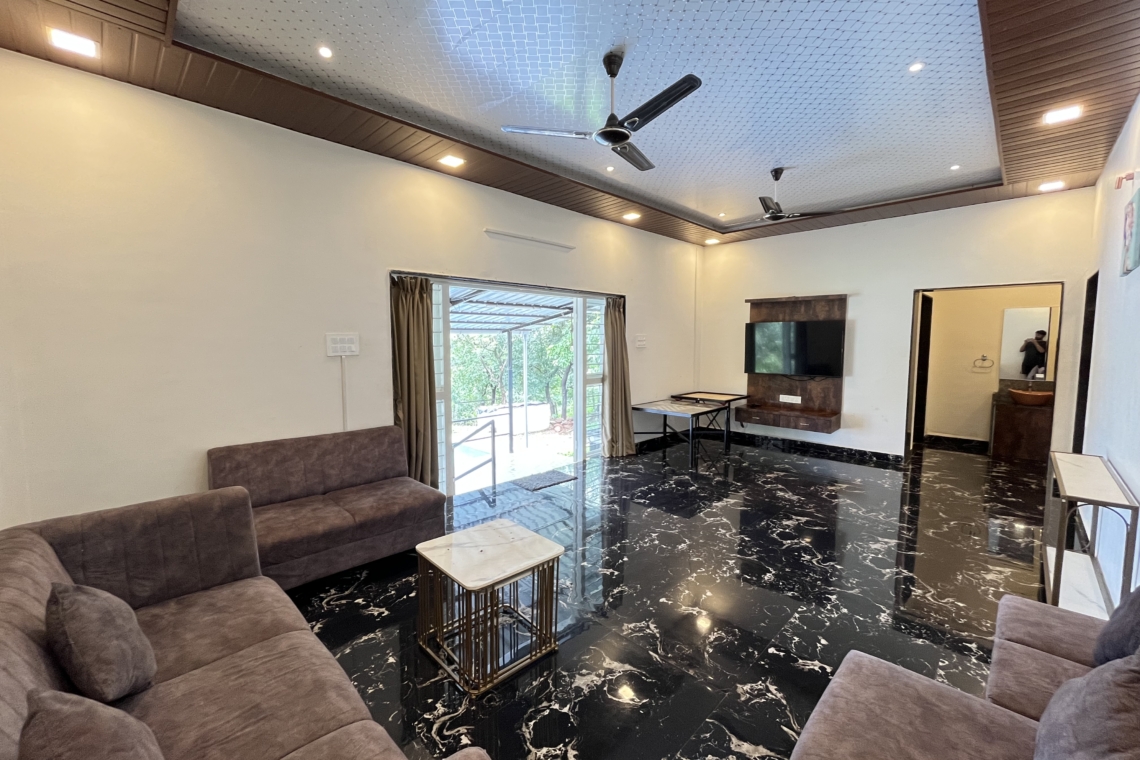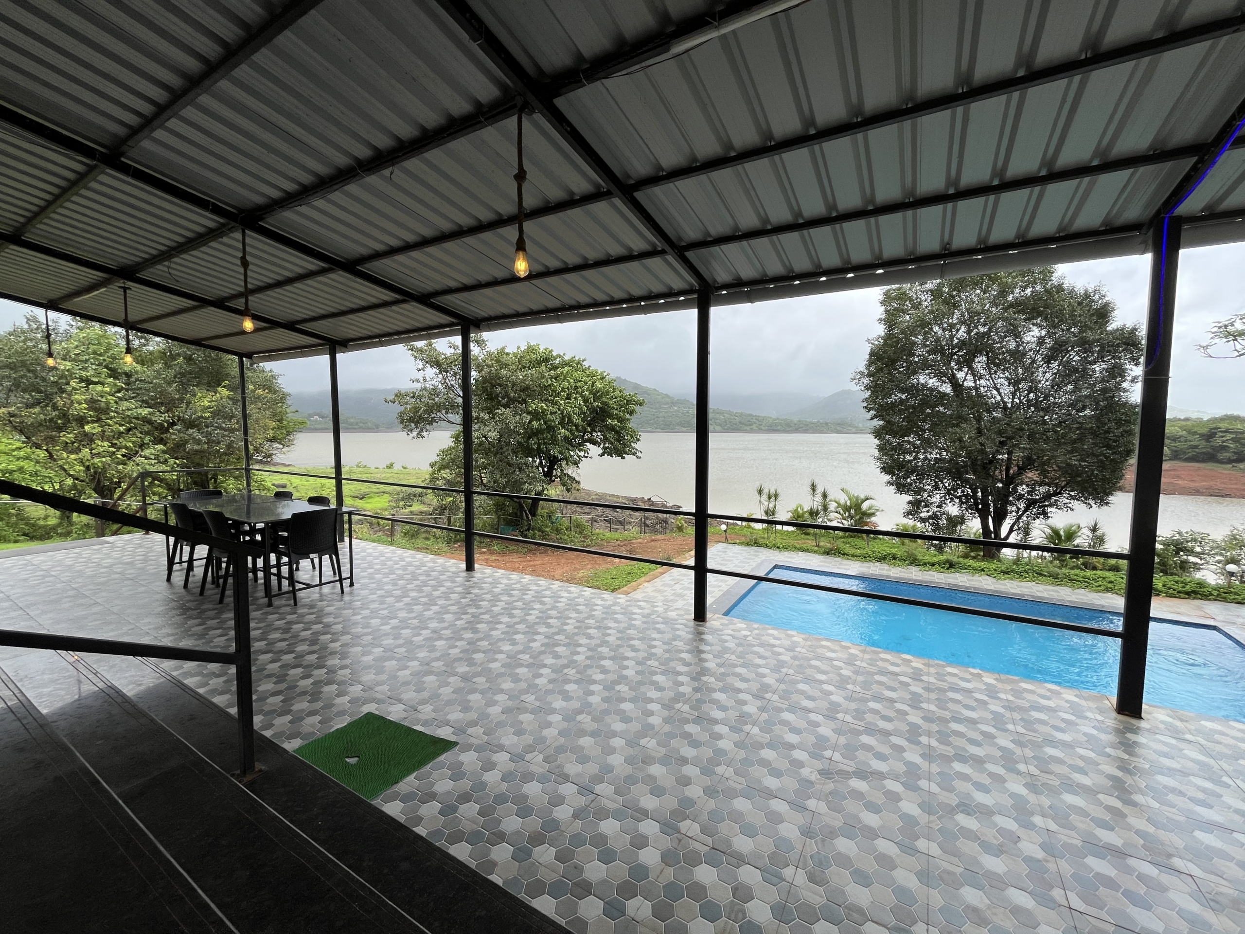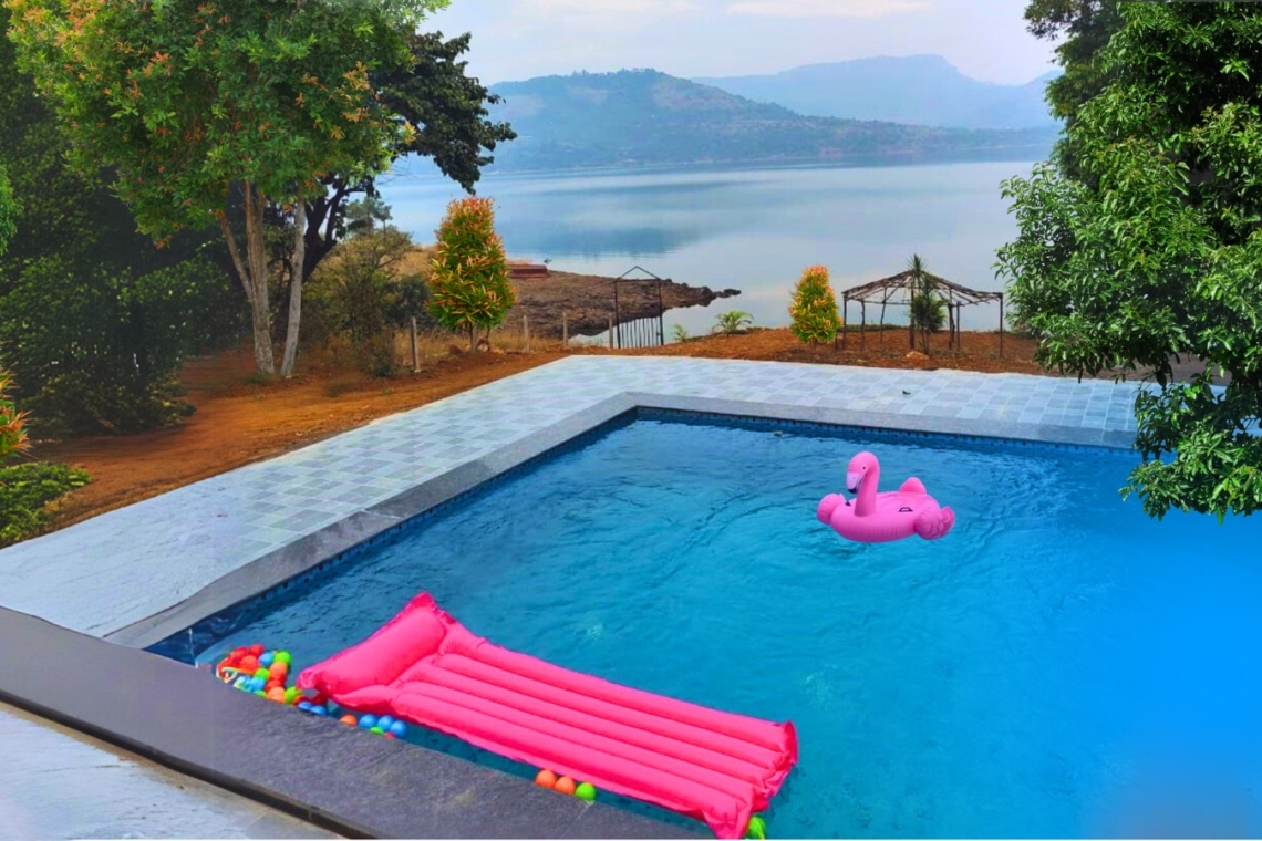 Lake Vibe 3BHK Villa is a spacious private retreat with a personal pool and stunning Pawna Lake views – perfect for families or groups seeking comfort, privacy, and relaxed luxury amidst serene lakeside surroundings.